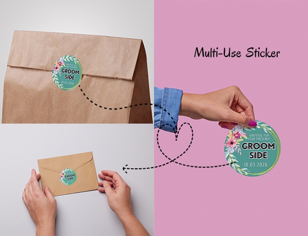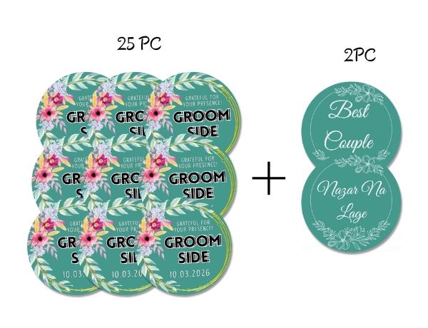 Give your event gifts a personalised and premium touch with our Custom Size Personalised Round Stickers. Whether you need small stickers for invitation seals or large stickers for gift hampers, we create them in any size you want. Each sticker is customised with your names, initials, event date, or your own design, making them perfect for weddings, engagements, anniversaries, birthdays, baby showers, and return gifts. Our stickers are printed using high-quality, fade-proof inks on premium glossy or matte sheets. The adhesive is strong, long-lasting, and waterproof—making the stickers suitable for all kinds of surfaces like paper boxes, plastic gift containers, metal tins, envelopes, and more. Ideal for: ✔ Marriage return gifts ✔ Engagement hampers ✔ Sweet boxes & laddoo boxes ✔ Mehendi & Haldi favours ✔ Invitation seals ✔ Birthday return gifts ✔ Baby shower gifts ✔ Corporate branding stickers Order now and share your size, names, and design preference—we’ll customise it perfectly for your event!